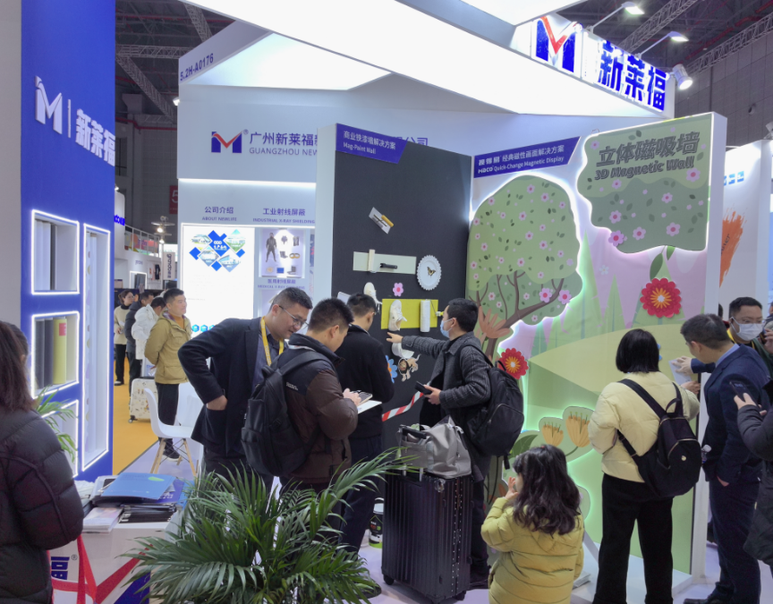 新萊福在本次上海國際廣印展上,展示了一系列全新鐵粉膜系列、印刷磁系列、可擦寫膜系列、凈易斯系列、磁吸墻紙系列、磁吸地板系列以及鐵粉漆產(chǎn)品的使用場景以及解決方案